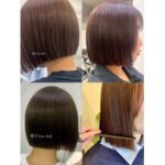 ぷつっとラインが可愛い顎下ボブ ツヤの出るブラウンカラーで、シンプルだけどおしゃ …