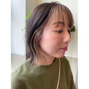 これくらいのベージュ系のインナーカラーは1~2ブリーチで出来ます♪