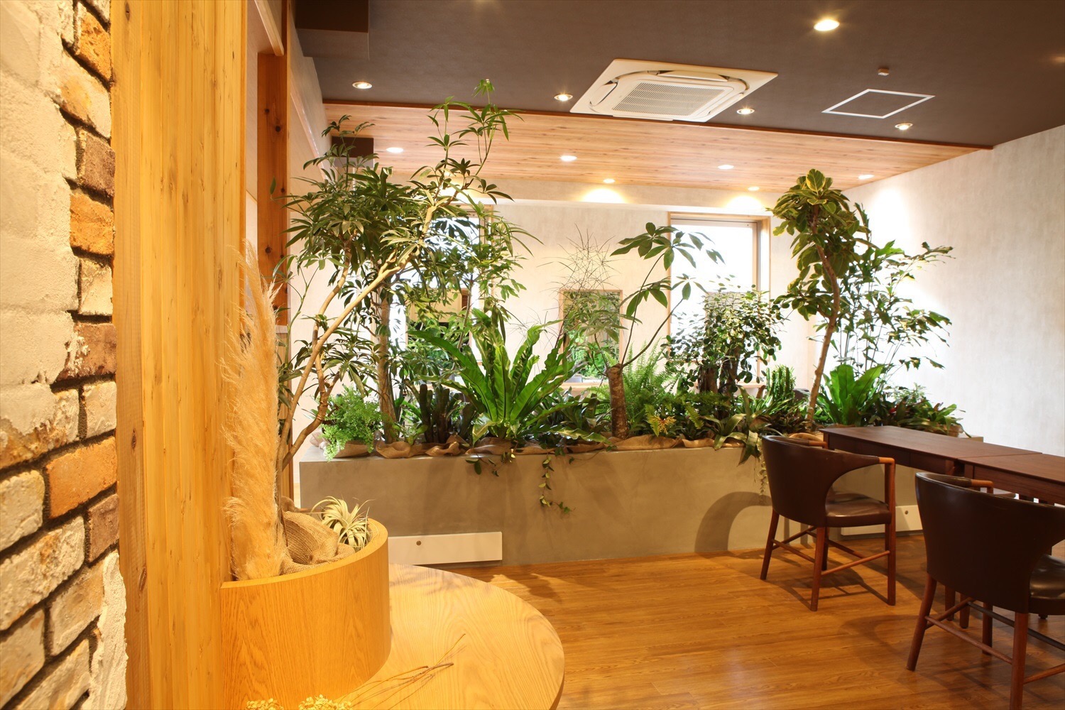緑のガーデンに区切られたスペースは周りの視線を外してくれて落ち着いて施術を受けることができます。